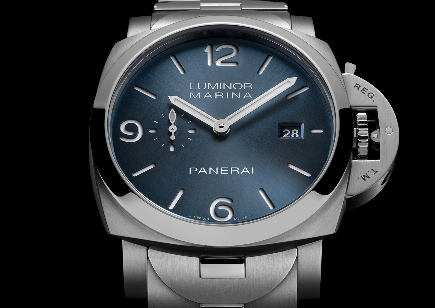 If you love any of the above Luminor Marinas but you’d prefer the sturdiness of a bracelet to a strap, Panerai has obliged with the reference PAM03323. This new steel bracelet features a distinctive V-shape design that tapers slightly from the case to the buckle. A new on-the-go adjustment feature allows the wearer to extend the length by 2mm without the need for tools—useful where temperatures fluctuate, causing your wrist to expand and contract.