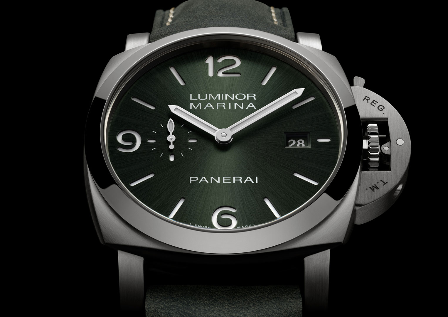 What sets it apart is its lightweight 44mm Grade-5 titanium case and the stunning sun-brushed green dial—a colour that reflects Panerai’s military roots.