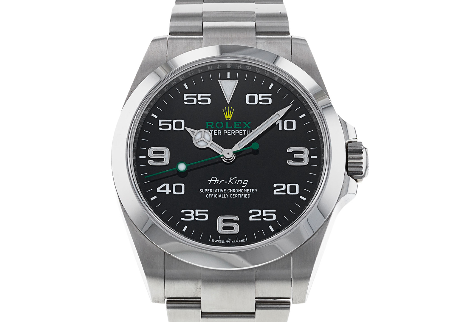 Since its debut in 1945 the Air-King has undergone more cosmetic tweaks than Michael Jackson. Early versions were barely distinguishable from the humble Oyster Perpetual before Rolex began jazzing it up with engine-turned bezels and concentric dials. This current version arrived in 2022, six years after it was given a total revamp with the 116900. We think they’ve finally nailed it with this one. Can the meddling stop now, please?