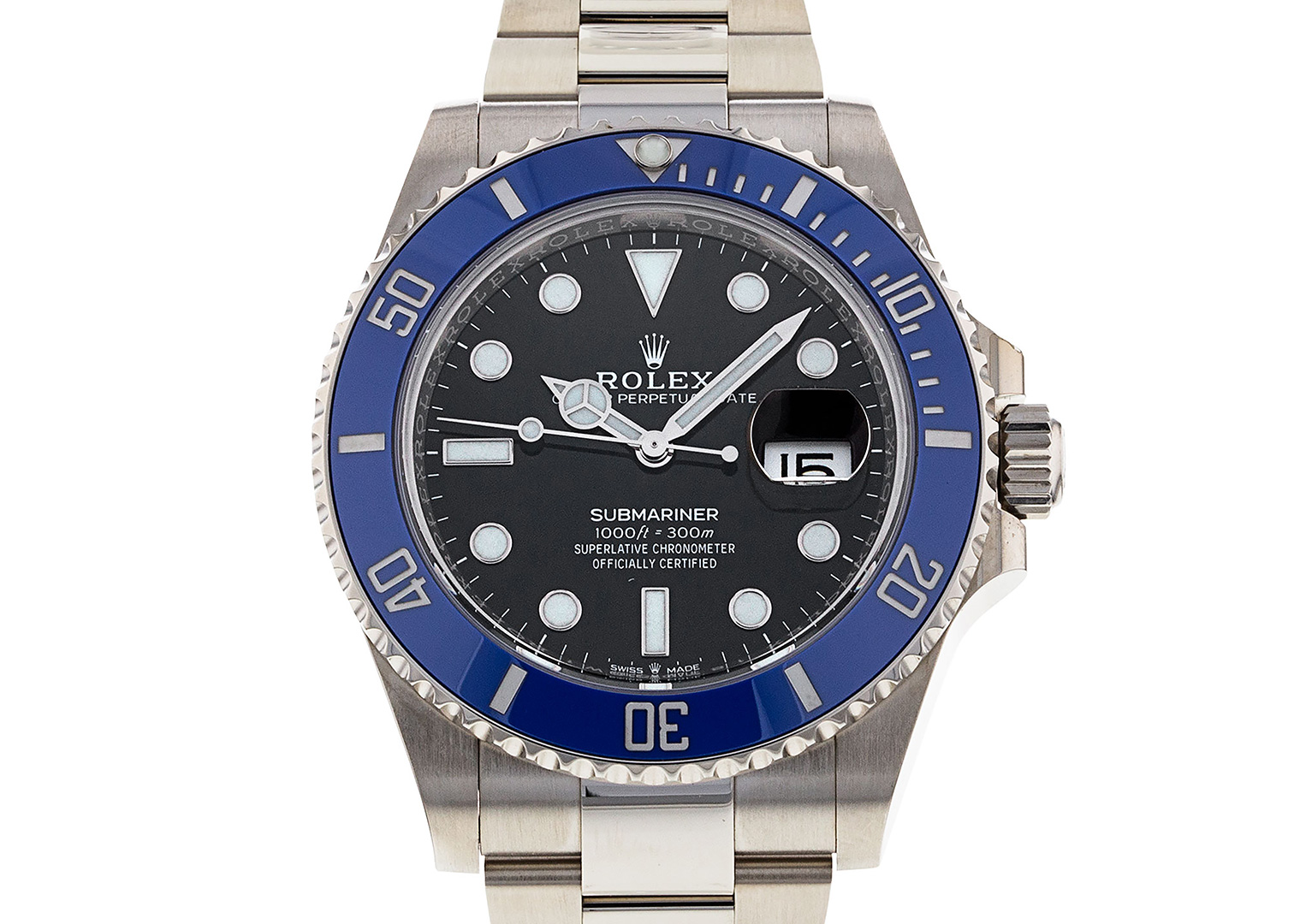 Silliest Rolex nickname ever? Probably, but this handsome Submariner in white gold is a stealth-wealth classic. Some people think a dive watch made of precious metal is contradictory (admittedly, you wouldn’t wear one while welding oil rigs under the sea). But there’s something seductive about a white gold watch with sporty looks. And that black dial and blue bezel combo is superb.